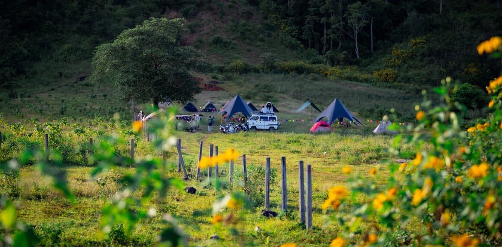 The emotional and aesthetic core of the Chư Đăng Ya experience is defined by the absolute aesthetic mandate of the annual blooming of the Hoa Dã Quỳ (Wild Sunflowers), transforming the red earth into a vast, lyrical tapestry of yellow and gold.