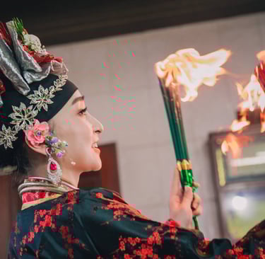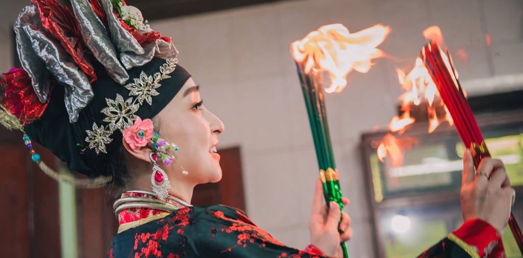 The Ritual of Transformation: The Thanh Đồng (Medium), usually a respected man or woman, acts as the temporary, human vessel for the various deities (the Mothers, the Sages, the Courtiers) to descend (giáng đồng). Through the meticulous, rapid changing of elaborate costumes, music (chầu văn), dancing, and symbolic gestures, the Medium physically embodies the spirit's energy and character, transforming the Điện (Temple Hall) into a vibrant, moving spiritual court.