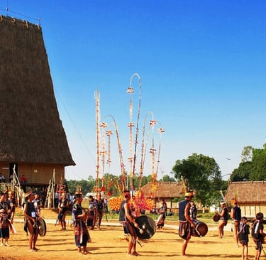 The Gong: The highly valued gong sets are the voice of the spirits and the ancestors. They are stored in the Nhà Rông because they are considered too sacred and too powerful to be kept in individual homes. Their music is the essential, rhythmic language used to communicate with the Sky Gods during the great Lễ Hội (Festivals), marking important passages like the harvest, the water buffalo sacrifice, or the new rice celebration.