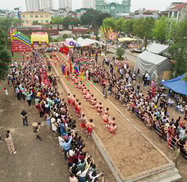 Hội Gióng (Hà Nội): While not exclusively Tug-of-War, the performance of martial arts and physical games reaffirms the historical strength and military preparedness of the early Vietnamese state, a spirit echoed in the physical demand of Tug-of-War.